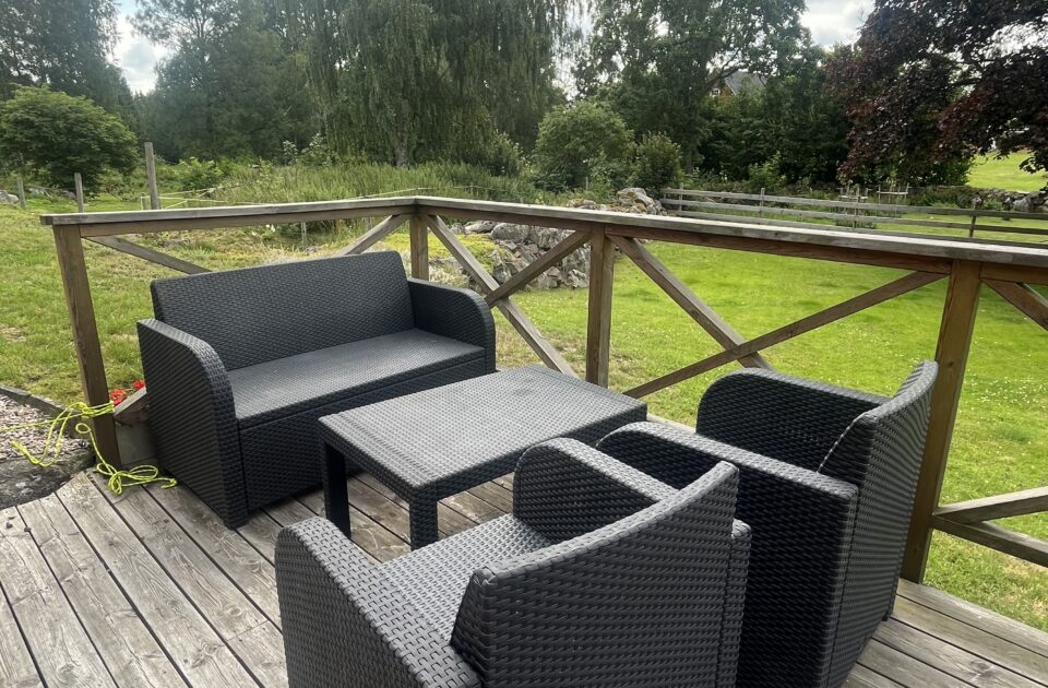 Die Hütte verfügt über einen eigenen kleinen Garten mit Grill,